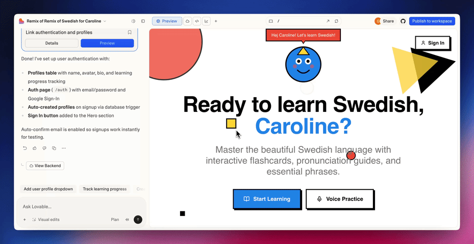 Lovable now plans more thoroughly before writing any code, mapping out features in detail, asking clarifying questions, and making sure it understands your vision before it starts building.